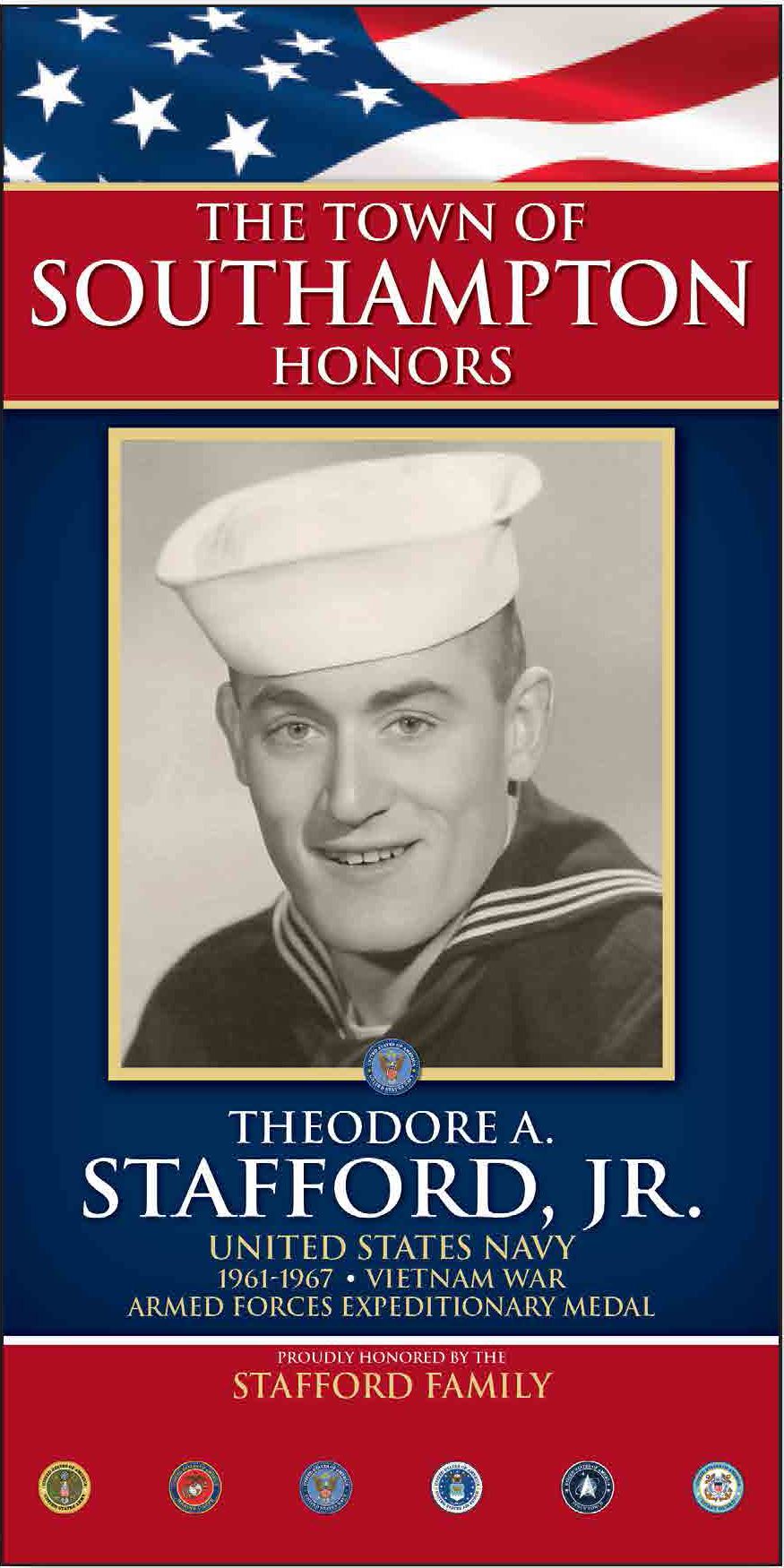 Theodore A. Stafford Jr. was born on August 17, 1942, to Theodore and Helen Stafford. He grew up in Floral Park, Long Island, and spent summers in Sag Harbor, New York, where he met his future wife, Frances Trunzo. He graduated from St. Paul’s Preparatory School in Garden City, New York. Upon graduation he chose to enlist in the Navy, where he served from 1961 to 1967. After graduating from the Naval Communications school, he was assigned to the U.S.S. Rogers, a destroyer, as a radioman first-class. His tour on the Rogers was extended because of the initiation of the Vietnam War. Upon completion of his tour of duty in the Navy, he returned to Sag Harbor and married his childhood sweetheart, Frances, with whom he raised four children.