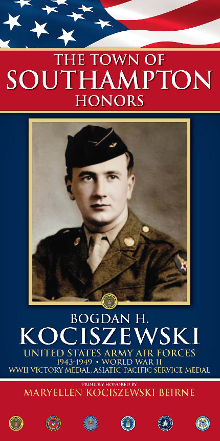 As an officer, Bogdan H Kociszewski was the recipient of the following awards: American Service Medal, Asiatic Pacific Service Medal, Good Conduct Medal, World War II Victory Medal.